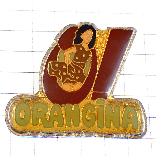 ピンバッジ・オランジーナ豹柄ミニスカート女の子 ORANGINA PIN-UP FRANCE