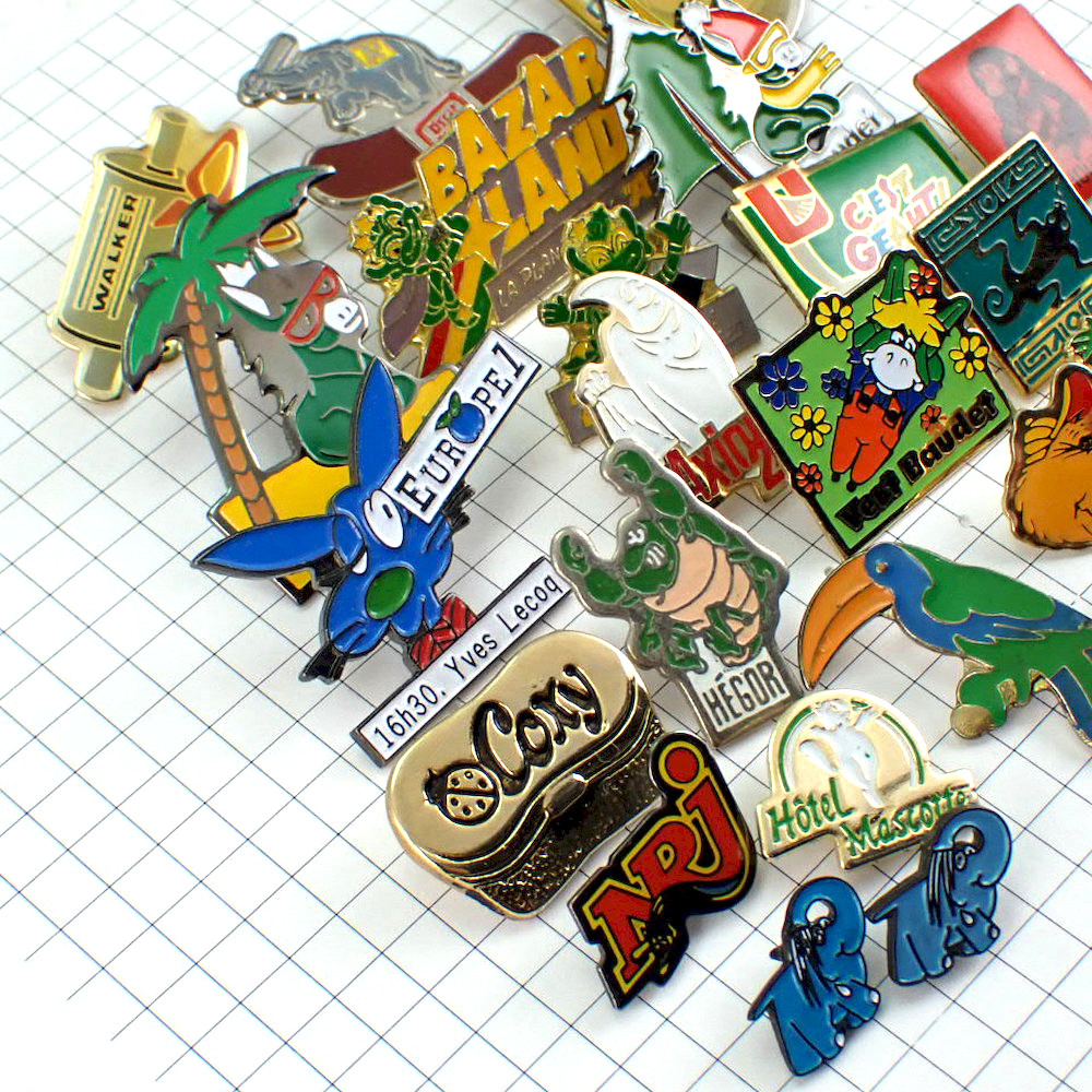 フランス ピンズ 雑貨 ヴィンテージ ピンバッジまとめて24個セット まとめ売り 大量 フレンチ ビンテージ 広告 鳥オウム馬テントウ虫など