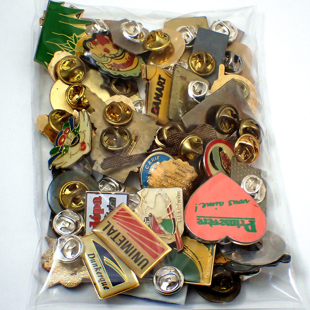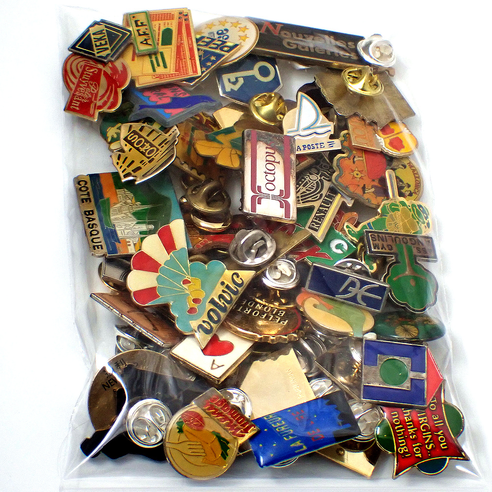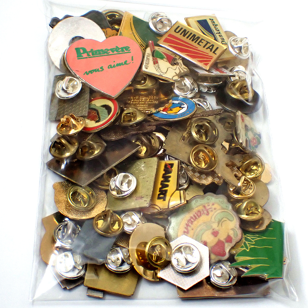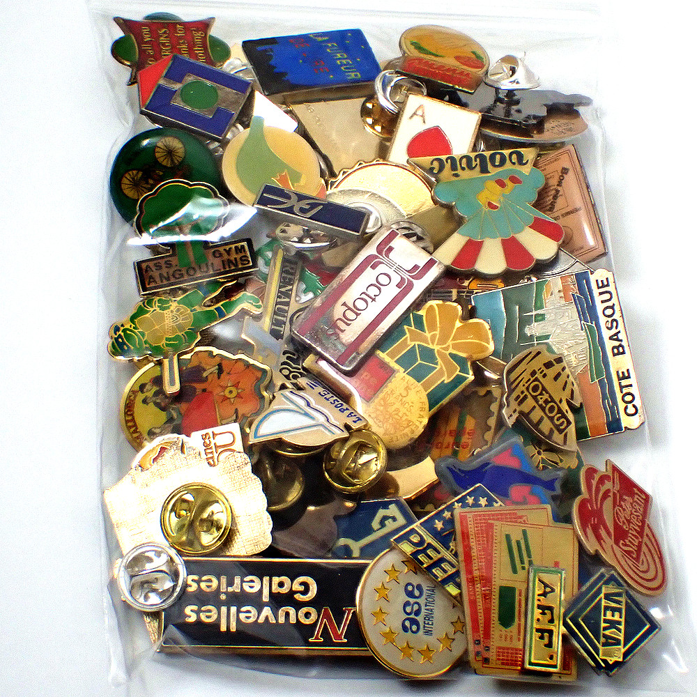 フランス ピンズ 雑貨 ヴィンテージ ピンバッジまとめて50個セット まとめ売り 大量 フレンチ ビンテージ 広告 ハート煙草ボート船スキー花シャツ鍵など