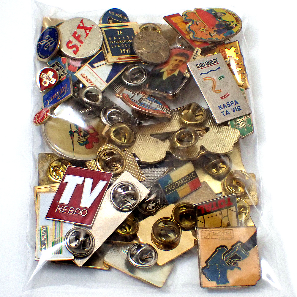 フランス ピンズ 雑貨 ヴィンテージ ピンバッジまとめて50個セット まとめ売り 大量 フレンチ ビンテージ 広告 モジュラージャック復活祭のウサギ地球など