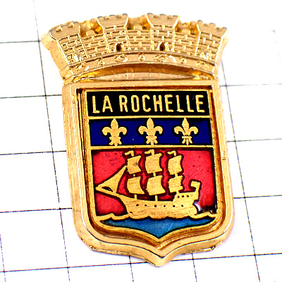 ピンバッジ・ラロシェル帆船と百合の紋章 LA-ROCHELLE FRANCE