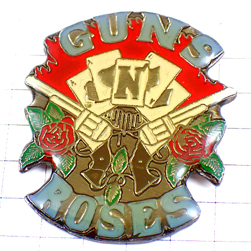 ピンバッジ・ガンズアンドローゼズ音楽ヘビメタ系バンド薔薇バラの花ピストル拳銃2丁ローズ GUNS-N-ROSES USA