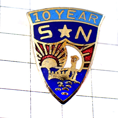 ピンバッジ・太陽と白い帆船アルファベットSN紋章10年