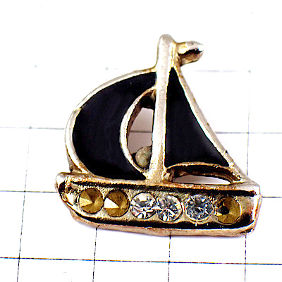 ピンバッジ・ヨット黒い帆船ラインストーン
