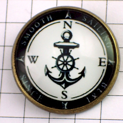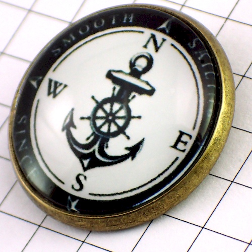 ピンバッジ・イカリ錨と方位磁石ボート船