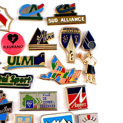 フランス ピンズ 雑貨 ヴィンテージ ピンバッジまとめて50個セット まとめ売り 大量 フレンチ ビンテージ 広告 パン屋さん握手カンガルー矢印ラグビーなど
