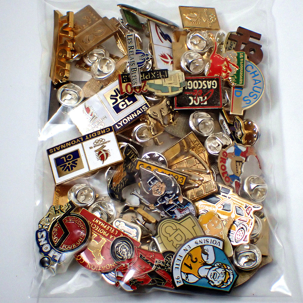 フランス ピンズ 雑貨 ヴィンテージ ピンバッジまとめて50個セット まとめ売り 大量 フレンチ ビンテージ 広告 ニンジン国旗アメリカ本ランナー黄色い車カンヌ映画祭など