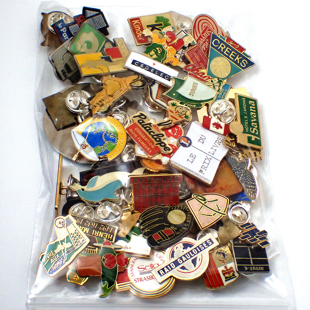 フランス ピンズ 雑貨 ヴィンテージ ピンバッジまとめて50個セット まとめ売り 大量 フレンチ ビンテージ 広告 イルカ帆船スペースシャトル化粧品アメフト野球んど