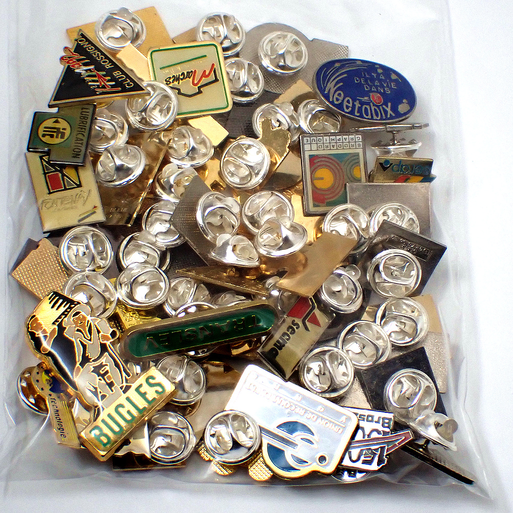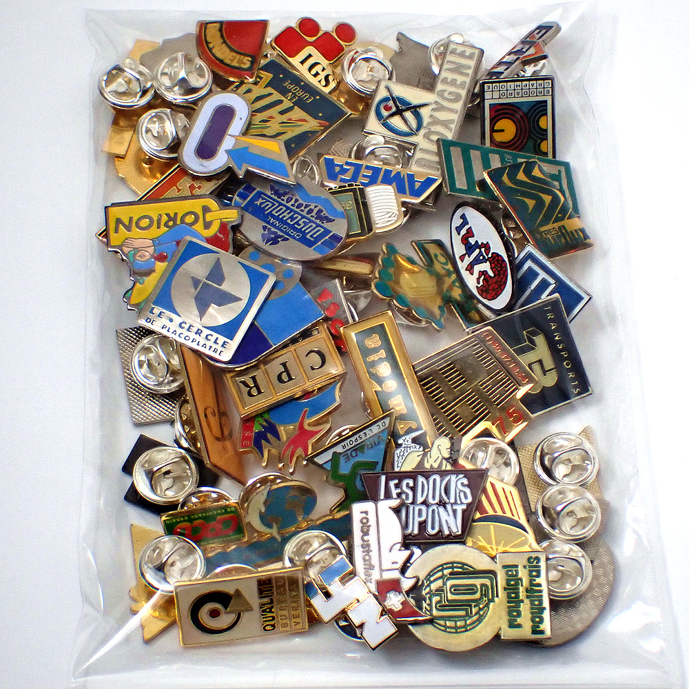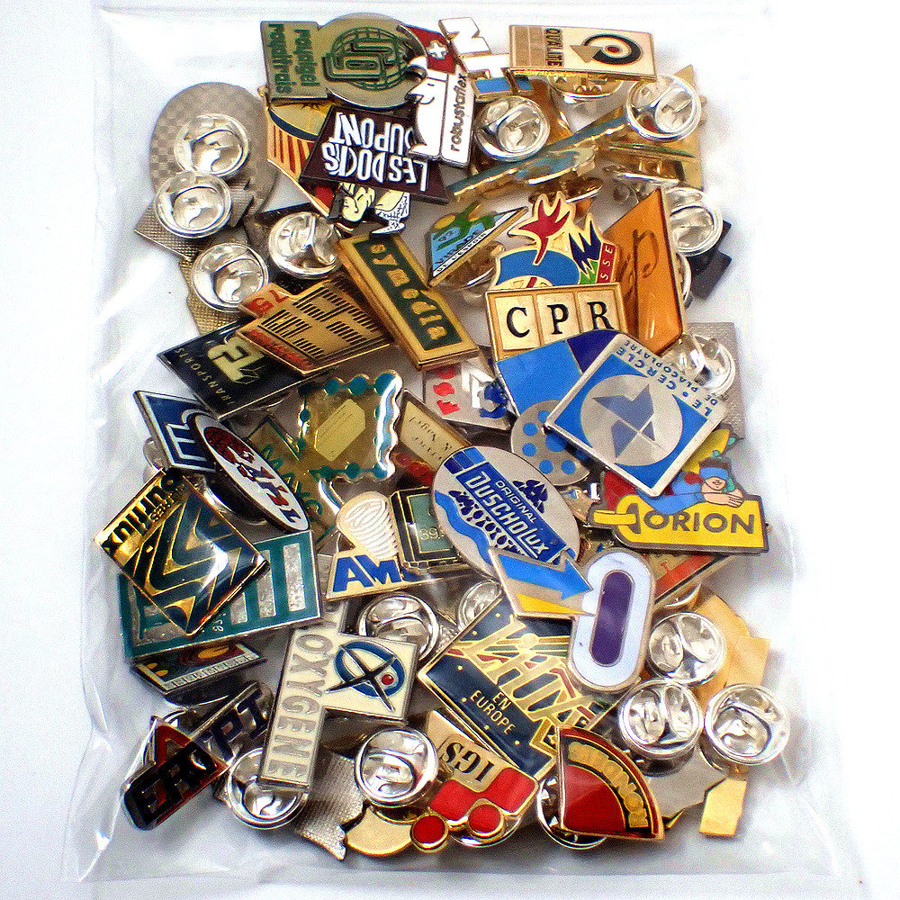 フランス ピンズ 雑貨 ヴィンテージ ピンバッジまとめて50個セット まとめ売り 大量 フレンチ ビンテージ 広告 ブルー青い矢印ロシニョールクラブなど