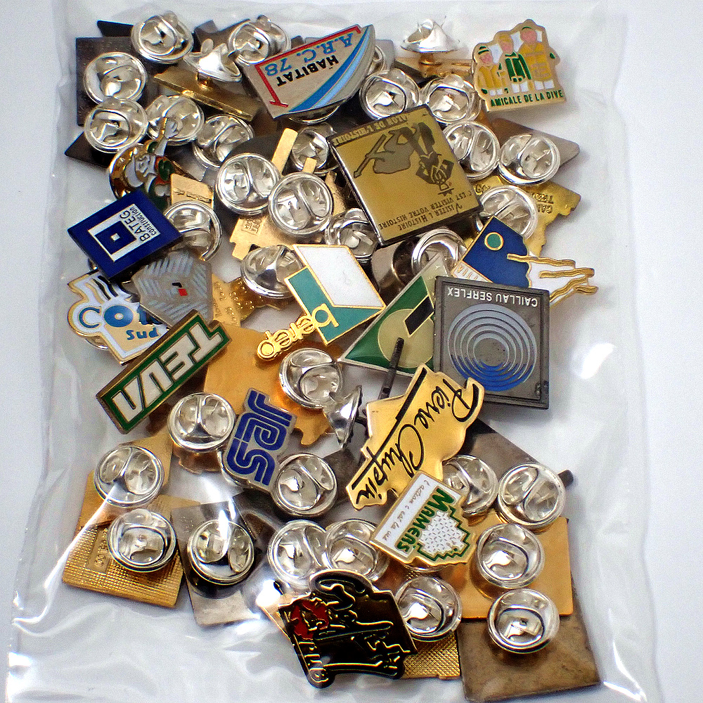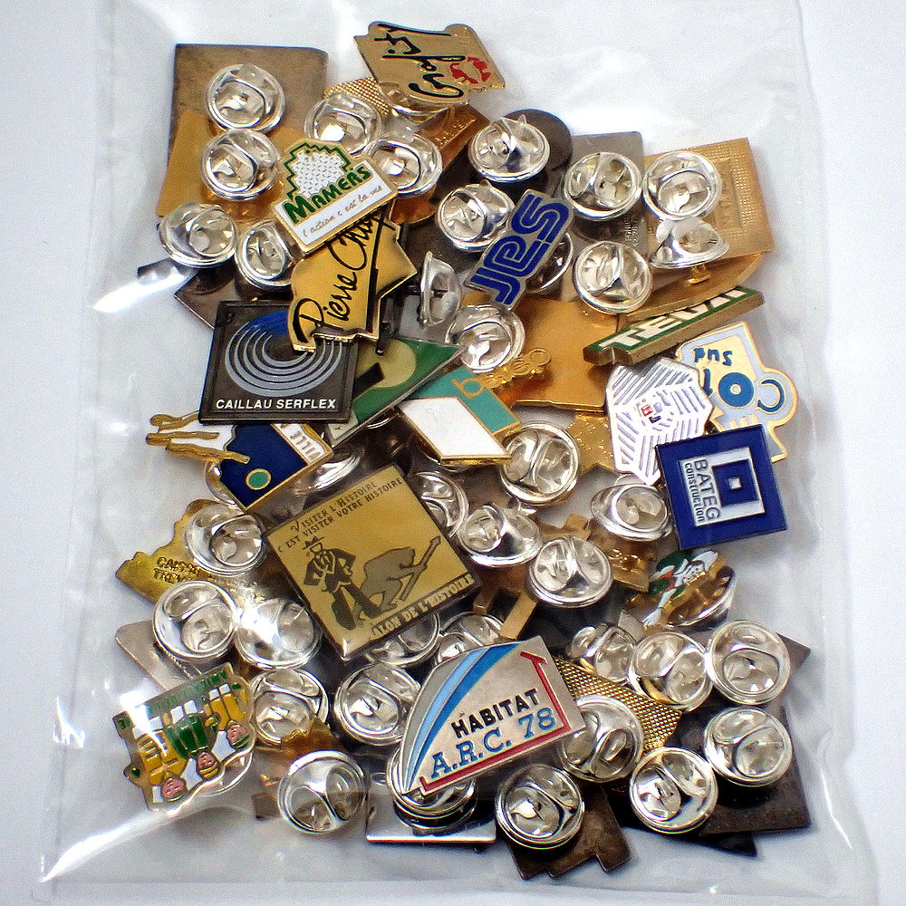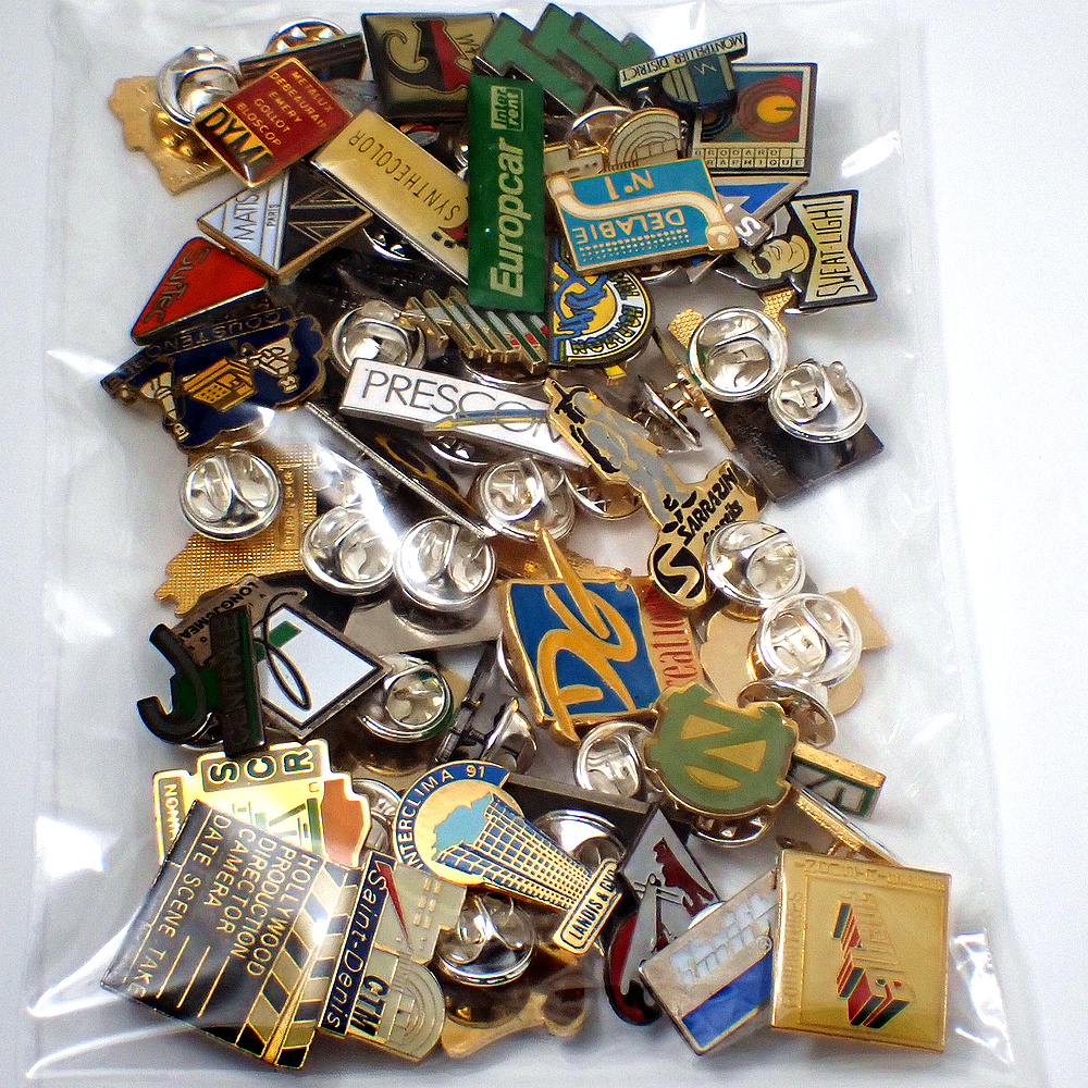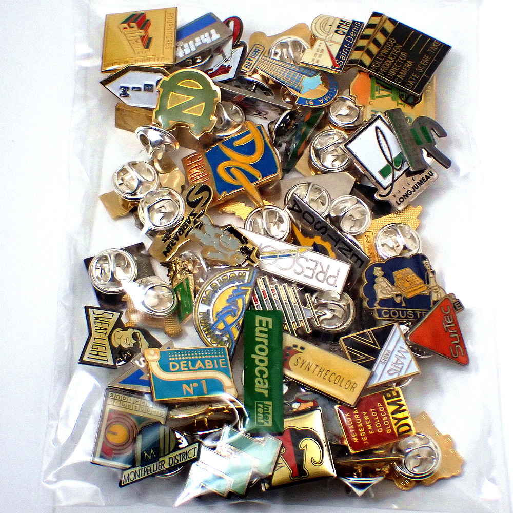 フランス ピンズ 雑貨 ヴィンテージ ピンバッジまとめて50個セット まとめ売り 大量 フレンチ ビンテージ 広告 アルファベットCN三角カチンコ映画など