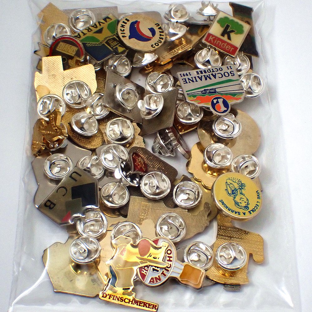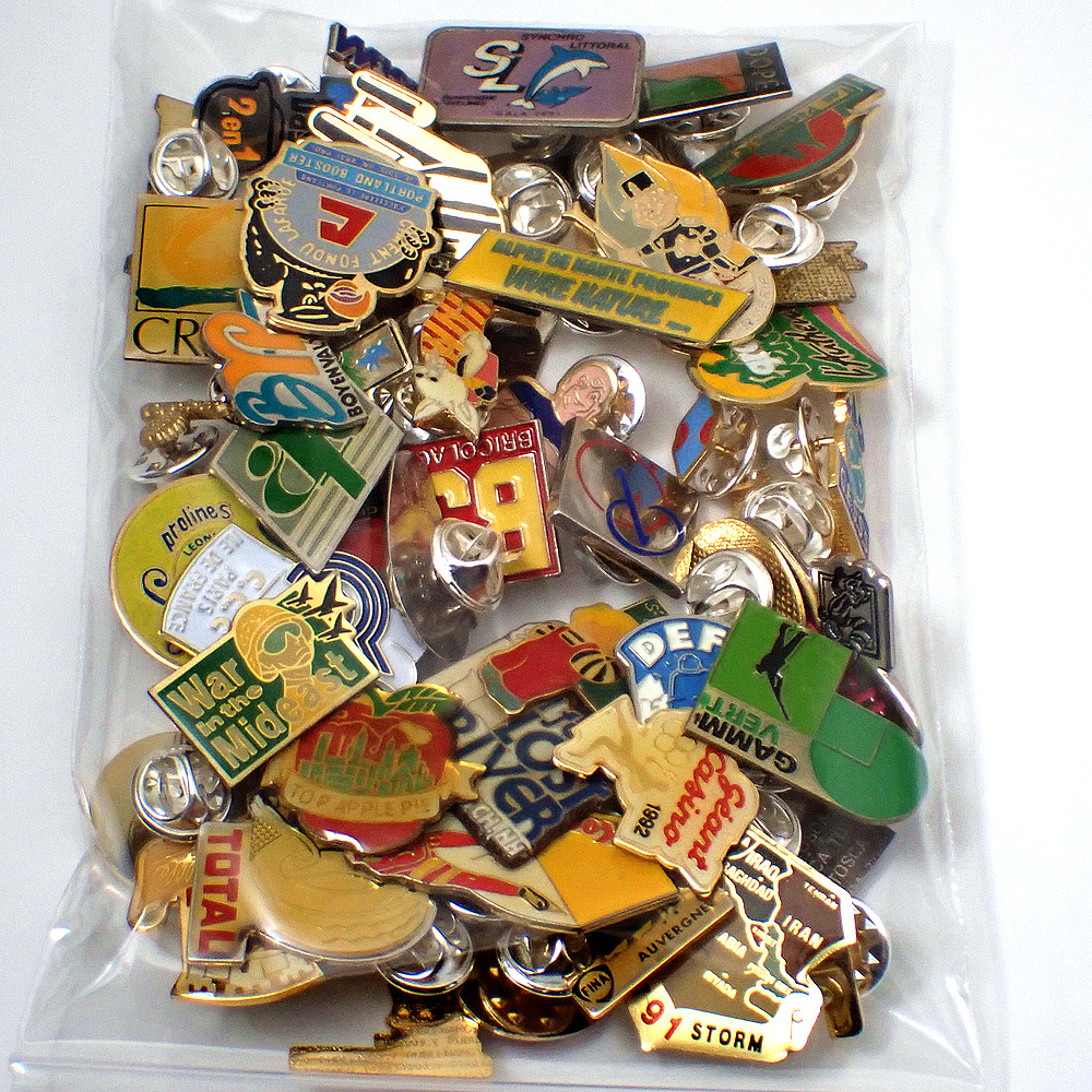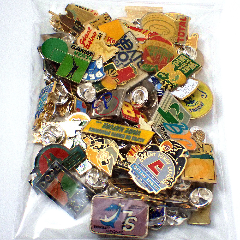 フランス ピンズ 雑貨 ヴィンテージ ピンバッジまとめて50個セット まとめ売り 大量 フレンチ ビンテージ 広告 イルカ黒い鳥ライフル銃リンゴNYアメリカお菓子チョコレートなど