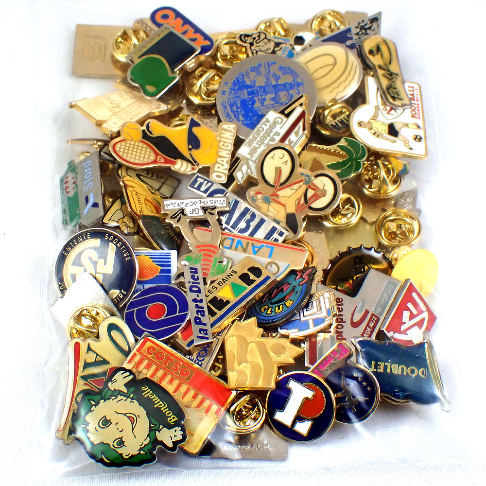 フランス ピンズ 雑貨 ヴィンテージ ピンバッジまとめて50個セット まとめ売り 大量 フレンチ ビンテージ 広告 自転車オランジーナ贈り物など