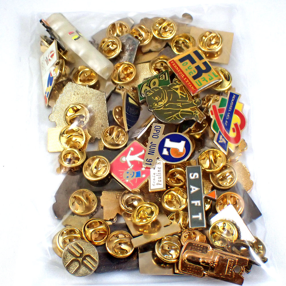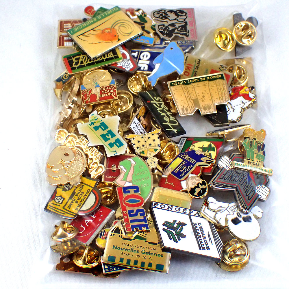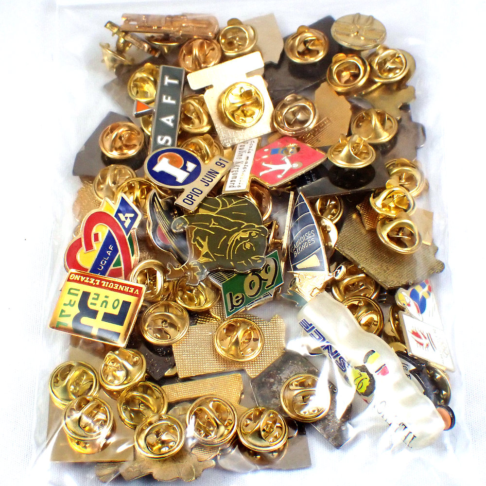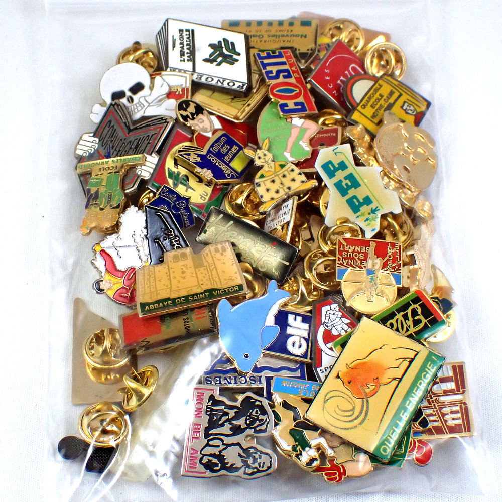フランス ピンズ 雑貨 ヴィンテージ ピンバッジまとめて50個セット まとめ売り 大量 フレンチ ビンテージ 広告 ハート象ドクロ兎など