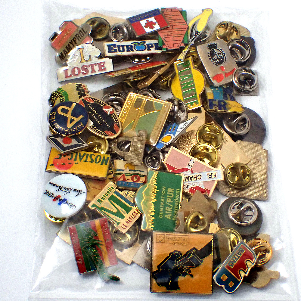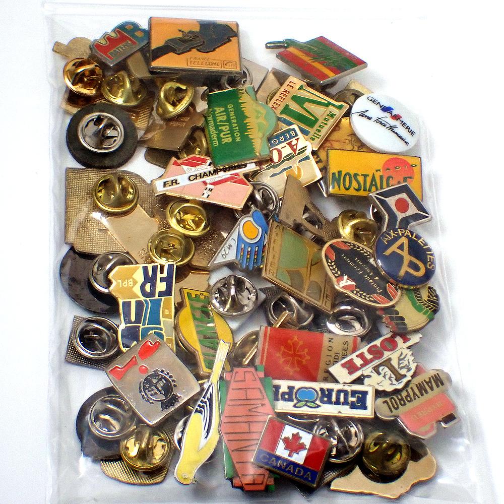 フランス ピンズ 雑貨 ヴィンテージ ピンバッジまとめて50個セット まとめ売り 大量 フレンチ ビンテージ 広告 カナダ国旗AP三角定規ブルー青い手など
