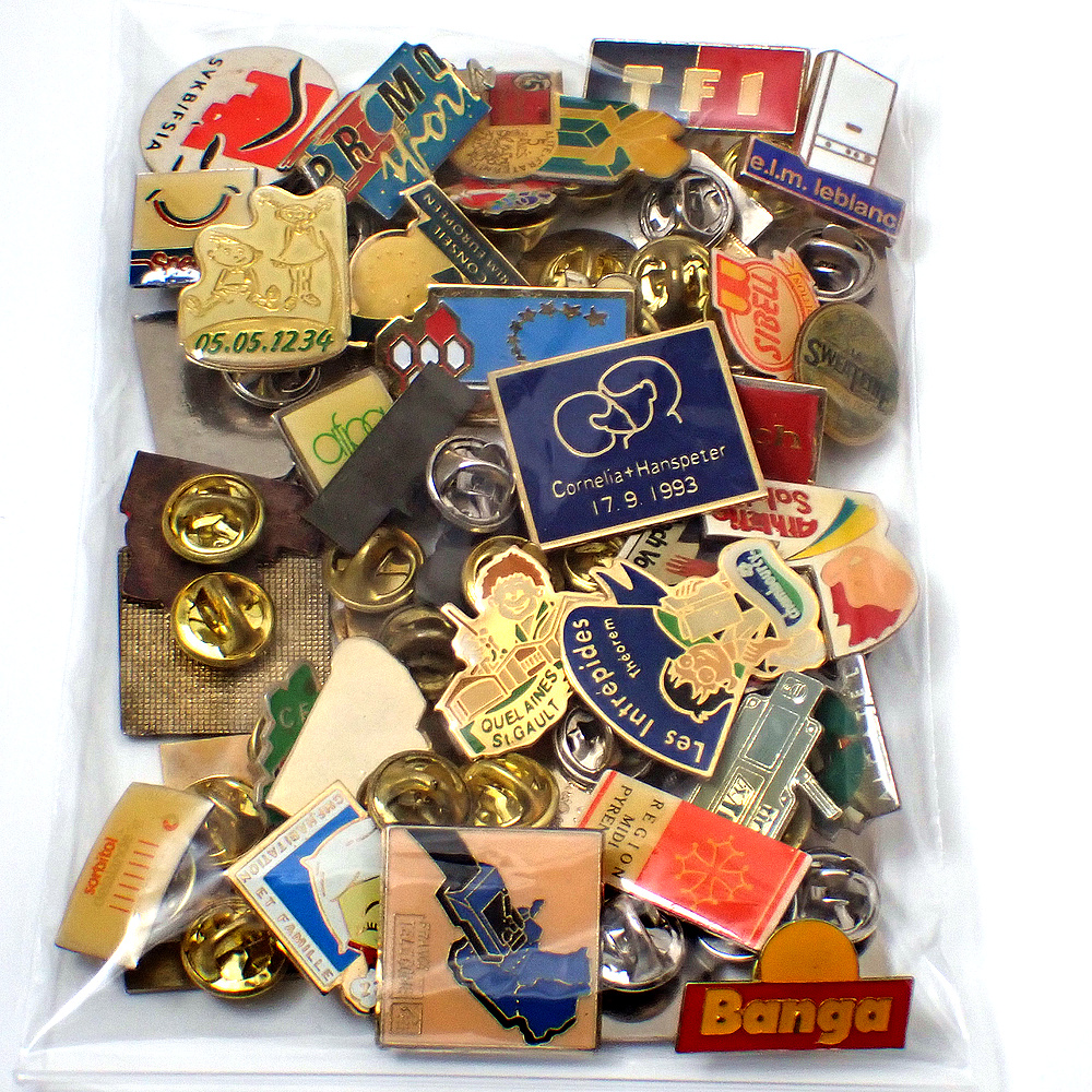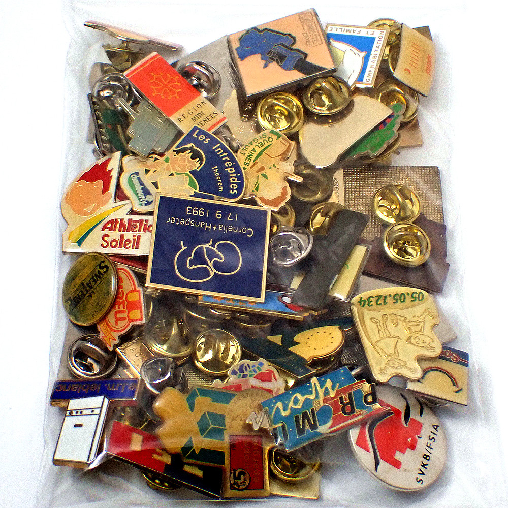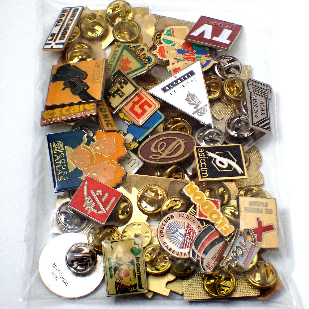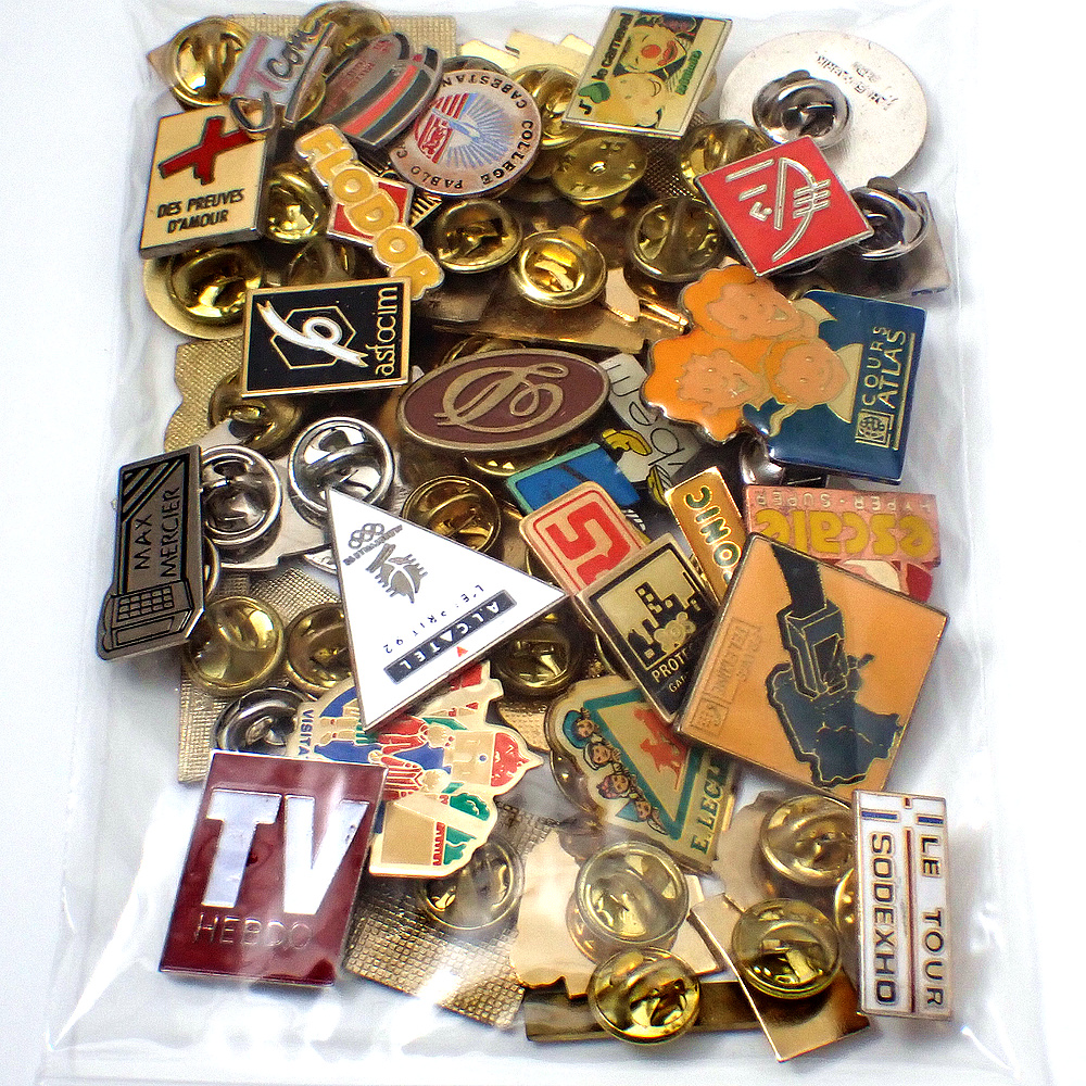フランス ピンズ 雑貨 ヴィンテージ ピンバッジまとめて50個セット まとめ売り 大量 フレンチ ビンテージ 広告 アルファベットDピエロ赤十字など