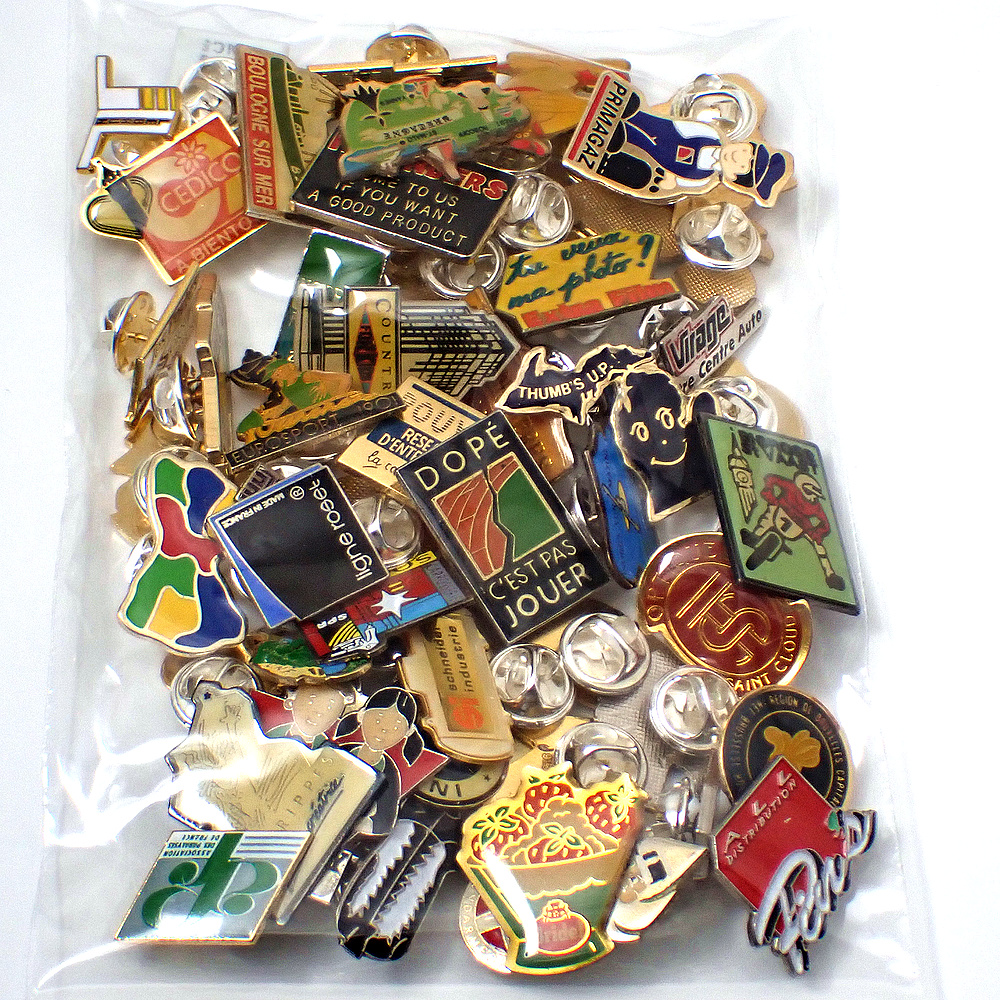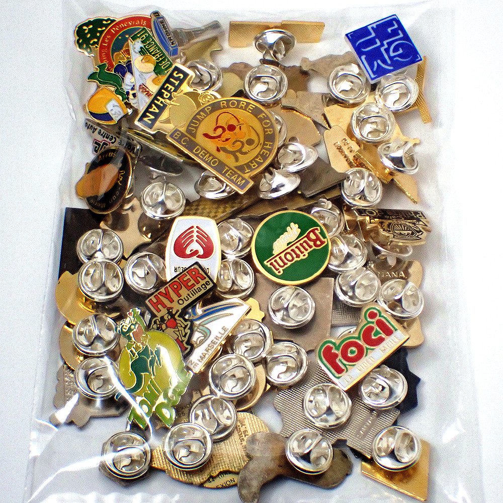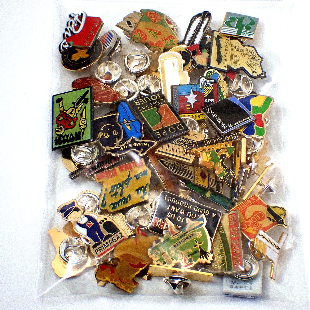 フランス ピンズ 雑貨 ヴィンテージ ピンバッジまとめて50個セット まとめ売り 大量 フレンチ ビンテージ 広告 ブイトーニ長靴オートバイ男の子など