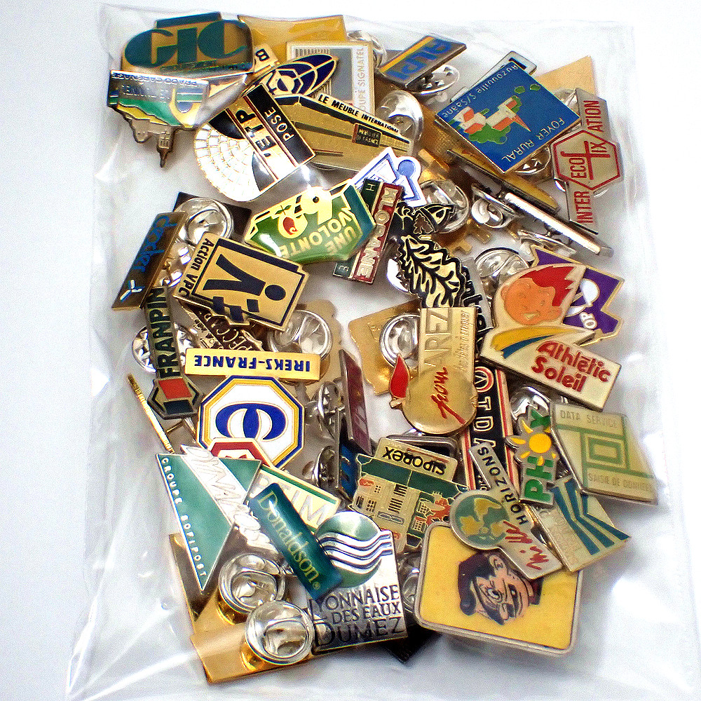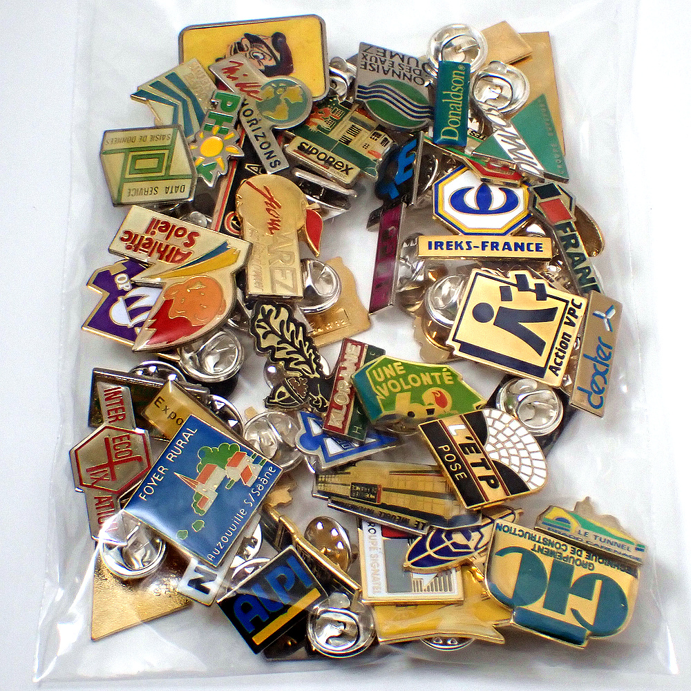 フランス ピンズ 雑貨 ヴィンテージ ピンバッジまとめて50個セット まとめ売り 大量 フレンチ ビンテージ 広告 アルファベットLA隻眼の男B葉っぱ男の子など