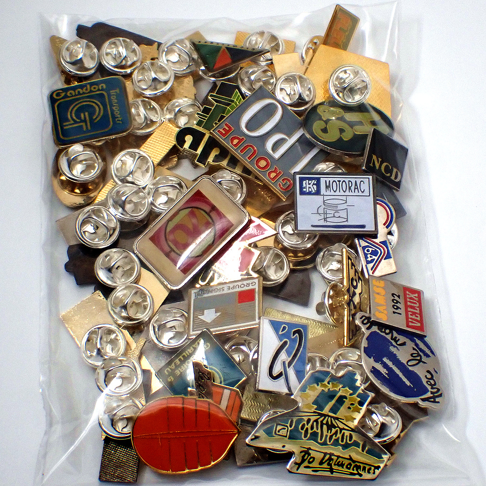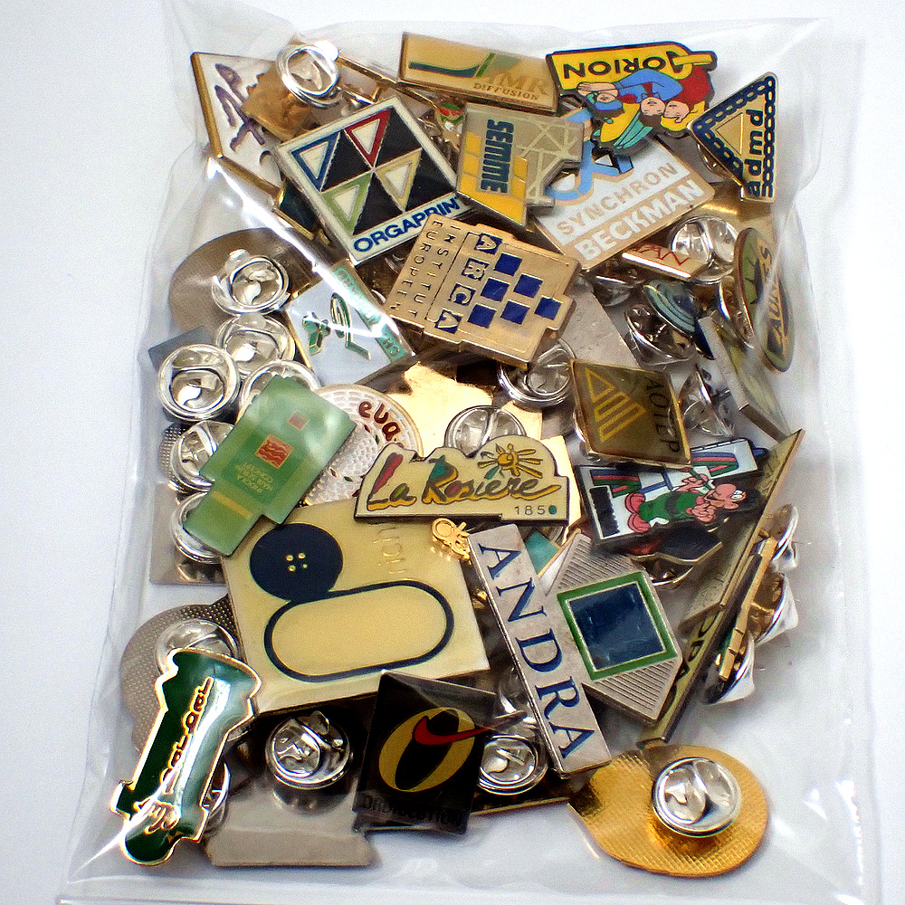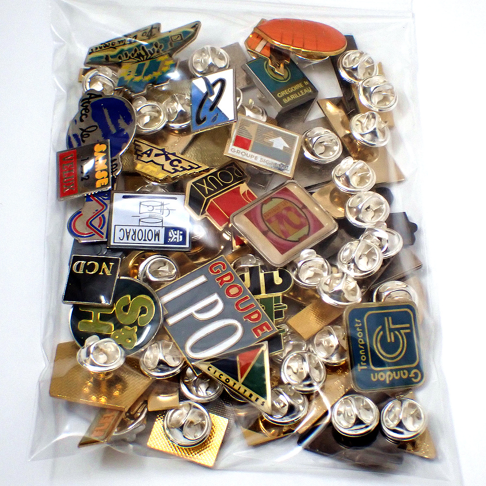 フランス ピンズ 雑貨 ヴィンテージ ピンバッジまとめて50個セット まとめ売り 大量 フレンチ ビンテージ 広告 カバンの名札カラフル三角など