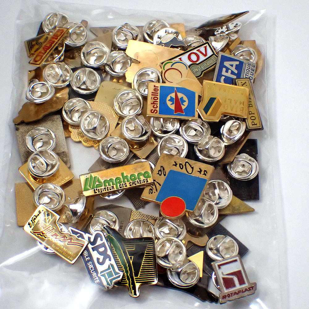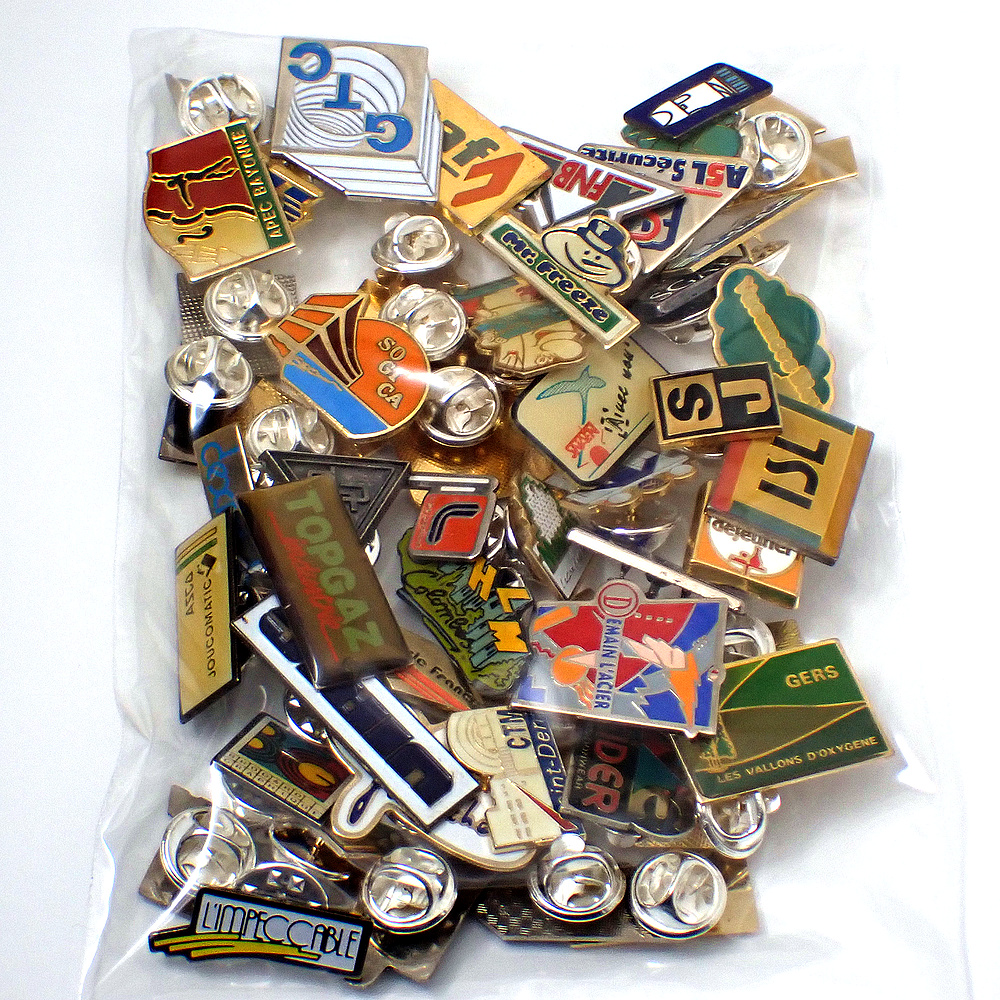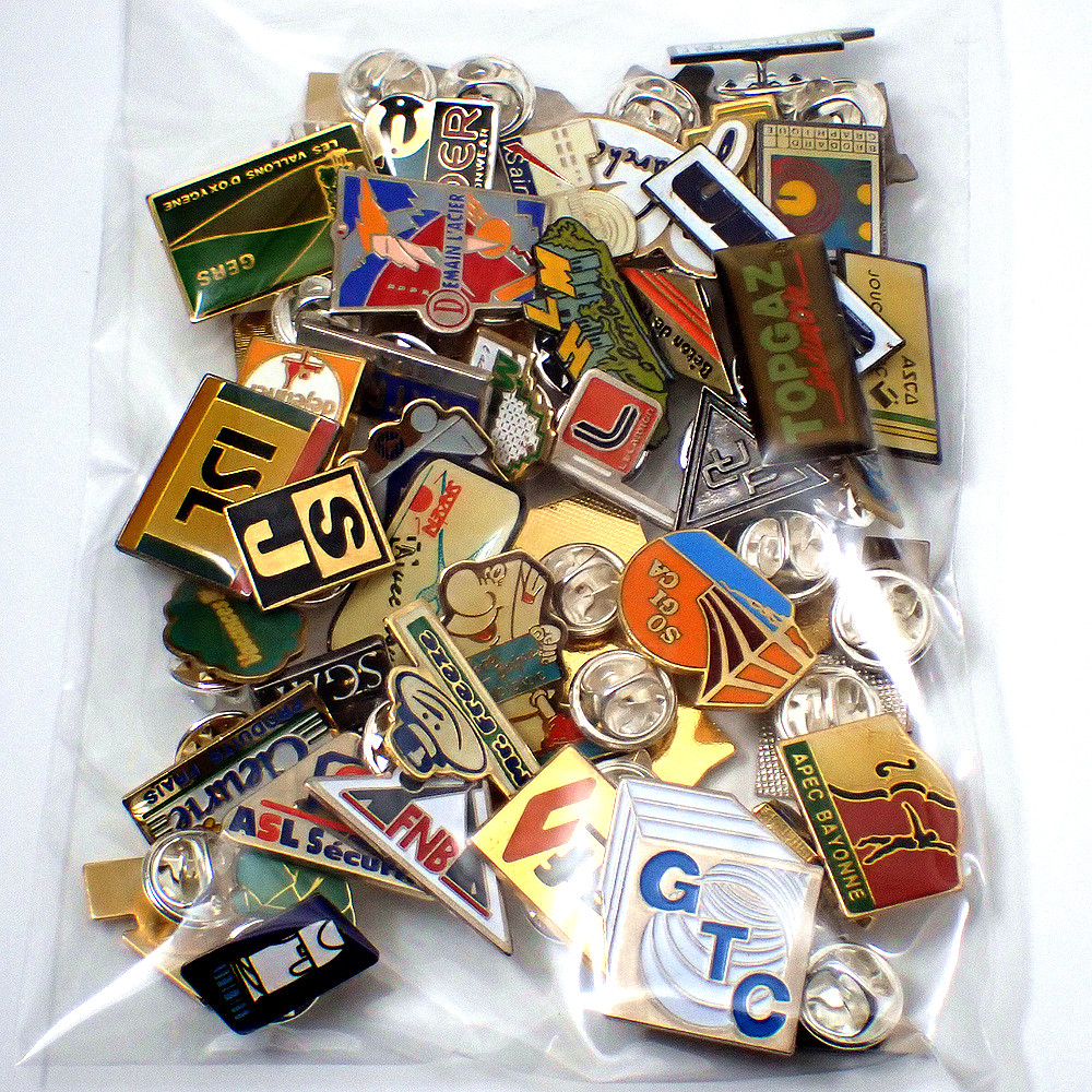 フランス ピンズ 雑貨 ヴィンテージ ピンバッジまとめて50個セット まとめ売り 大量 フレンチ ビンテージ 広告 シルクハットの雪だるま楽器バイヨンヌ鳥など