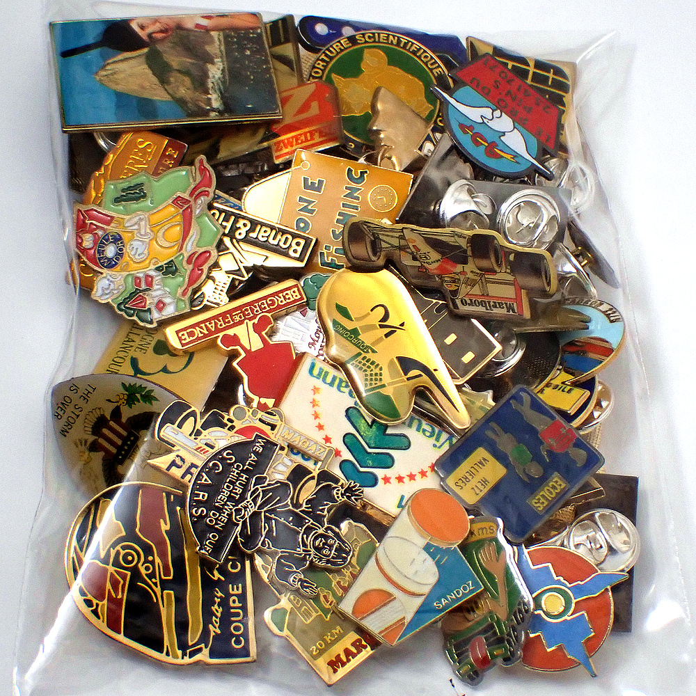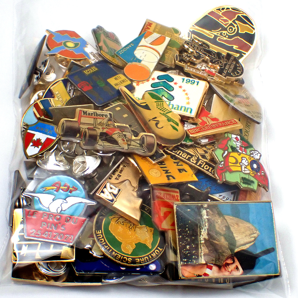 フランス ピンズ 雑貨 ヴィンテージ ピンバッジまとめて50個セット まとめ売り 大量 フレンチ ビンテージ 広告 パリマッチ雑誌ヘルメットF1レースカー車チーズなど