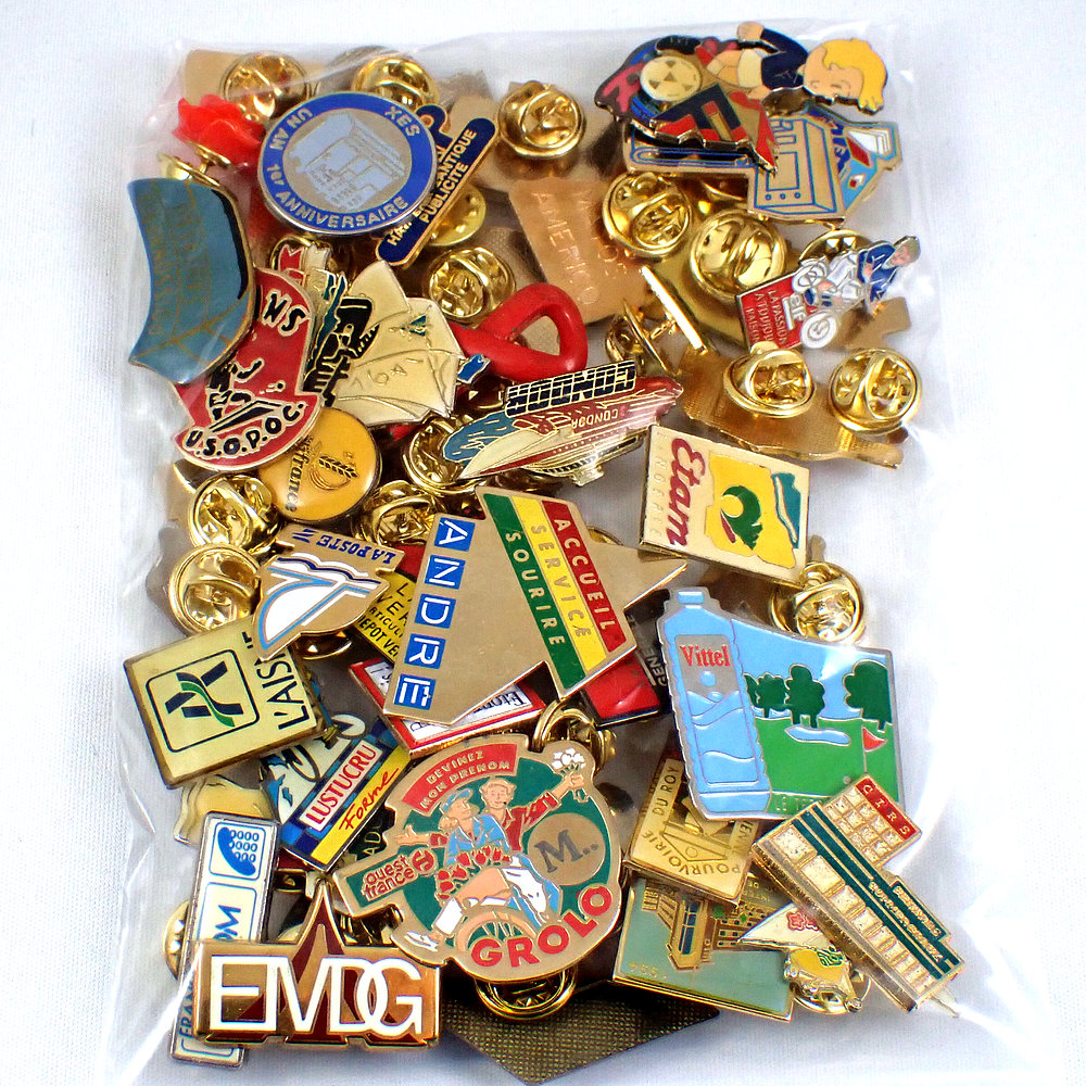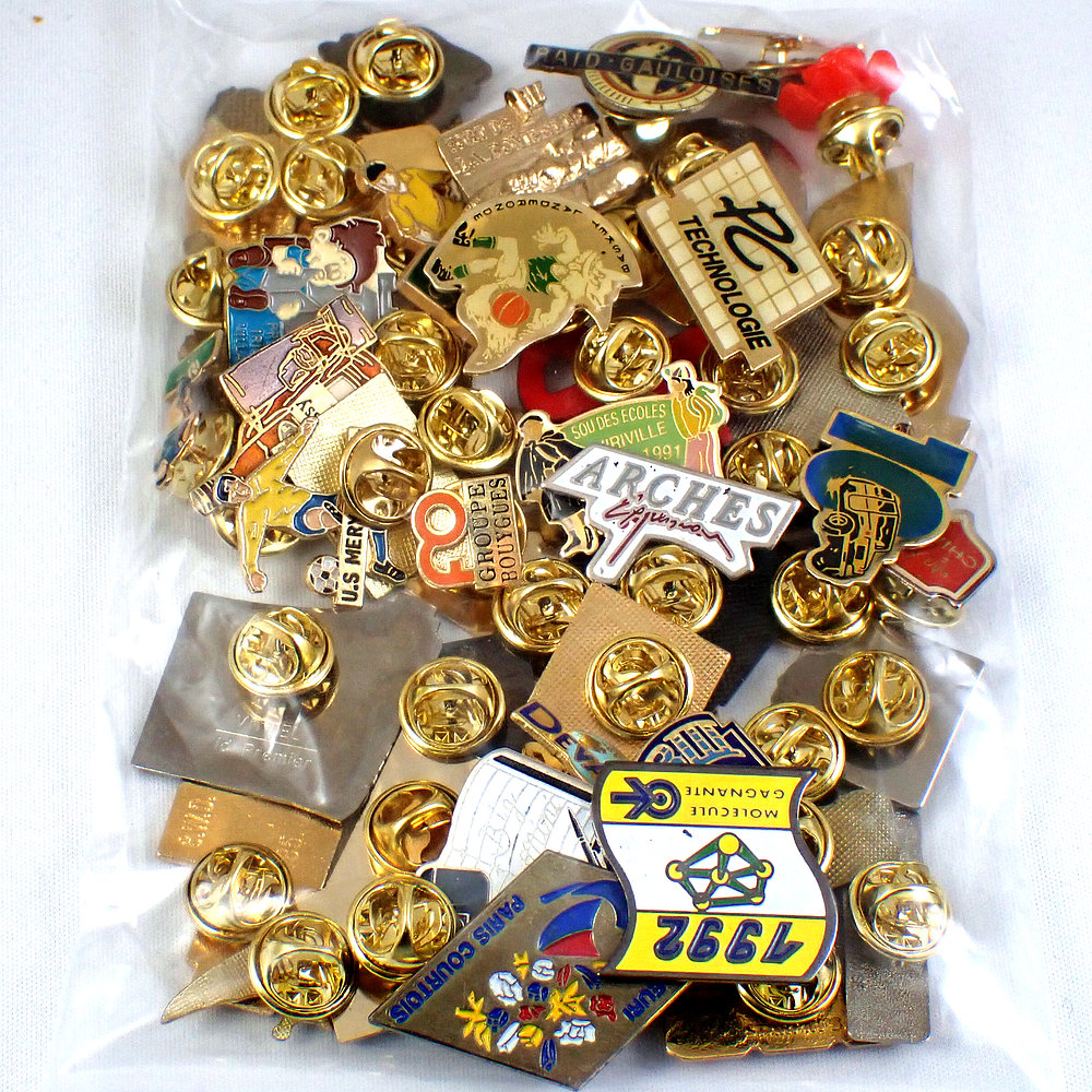 フランス ピンズ 雑貨 ヴィンテージ ピンバッジまとめて50個セット まとめ売り 大量 フレンチ ビンテージ 広告 花と帆船ローズ水ボトルなど