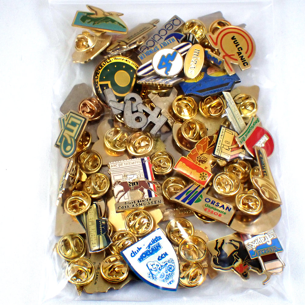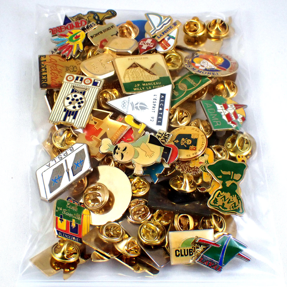 フランス ピンズ 雑貨 ヴィンテージ ピンバッジまとめて50個セット まとめ売り 大量 フレンチ ビンテージ 広告 ボート猫コックさんなど